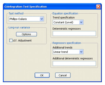 ±âÁ¸ÀÇ Johansen °øÀûºÐ °ËÁ¤À» º¸¿ÏÇϱâ À§Çؼ EViews 7¿¡¼´Â Engle and Granger(1987)¿Í Phillips and Ouliaris(1990) ÀÜÂ÷±â¹Ý °ËÁ¤, Hansen¡¯s(1992b) ºÒ¾ÈÀü °ËÁ¤°ú Park¡¯s(1992) Ãß°¡ º¯¼ö °ËÁ¤À» Áö¿øÇÕ´Ï´Ù.