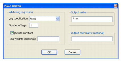 EViews´Â AR¶Ç´Â VAR ȸ±Í¸¦ »ç¿ëÇÏ¿© ½Ã¸®Áî ¹× ½Ã¸®Áî ±×·ìÀ» ¾ÆÁÖ ½±°Ô ¹é»öȽÃų ¼ö ÀÖ½À´Ï´Ù. ¹é»öÈ´Â °íÁ¤ Á¶°Ç ¶Ç´Â ½ÃÂ÷ Á¤º¸ Á¶°ÇÀ» »ç¿ëÇÏ¿© »ó¼ö¿Í Çà °¡ÁßÄ¡ÀÇ À¯¹«¿¡ »ó°ü¾øÀÌ ¼±ÅÃÇÏ¿© »ç¿ëÇÒ ¼ö ÀÖÀ¸¸ç ¹é»öÈ È¸±Í °è¼ö¸¦ ÀúÀåÇÒ ¼ö ÀÖ½À´Ï´Ù.